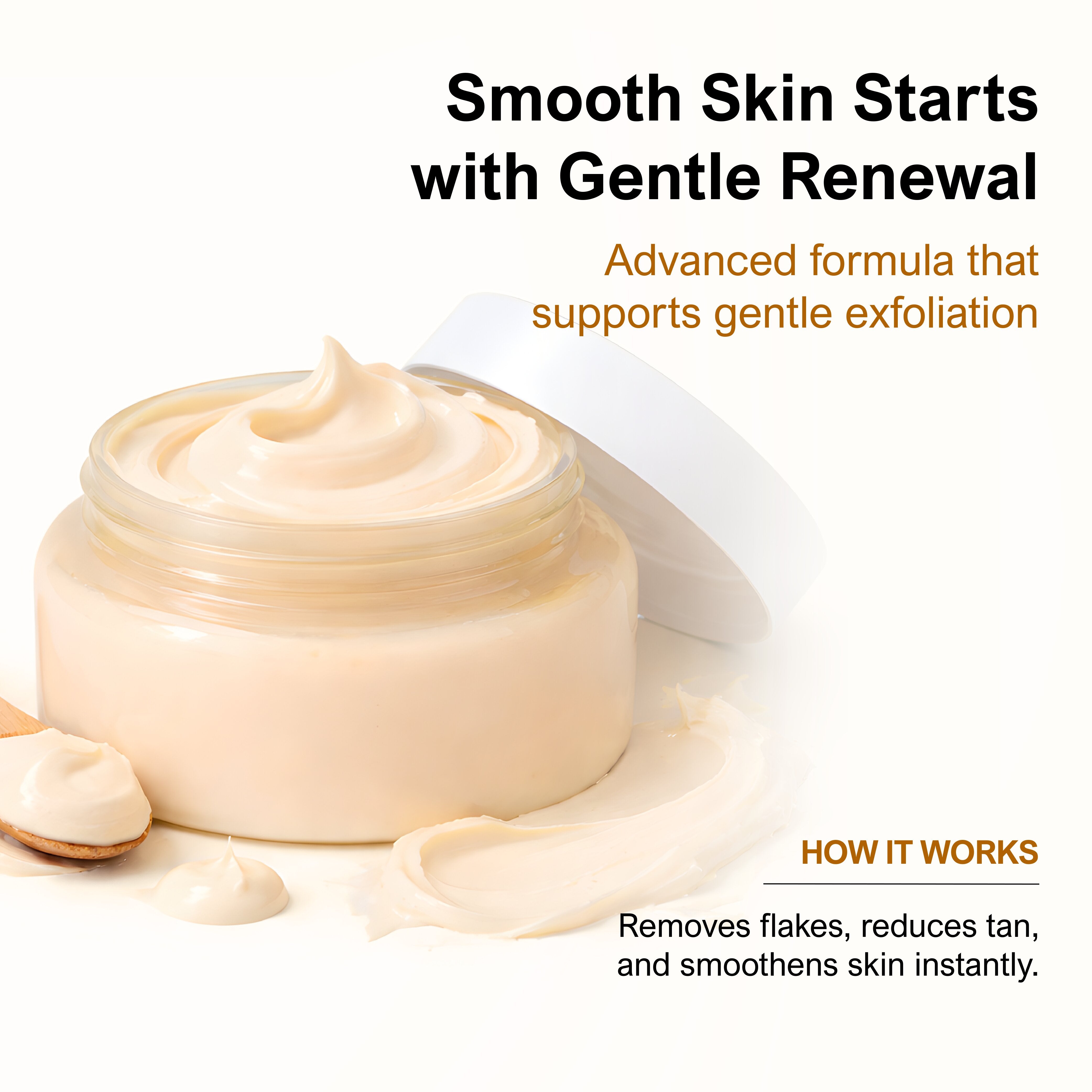 Dead skin cells accumulate, creating a rough, dull texture that blocks moisture absorption. Salt scrubs often sting and strip natural oils, leaving skin dry and damaged. Your body needs exfoliation that removes buildup while simultaneously replenishing moisture—gentle renewal without compromise.